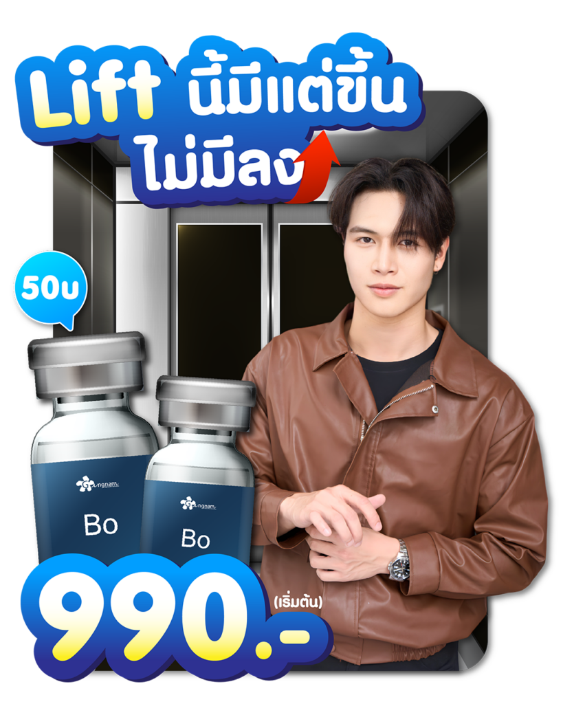 - ราคาคุ้มค่าที่สุด เริ่มต้นเพียง 990.- เหมาะสำหรับผู้ที่ต้องการคงสภาพหน้าเรียว หรือทดลองฉีดครั้งแรก