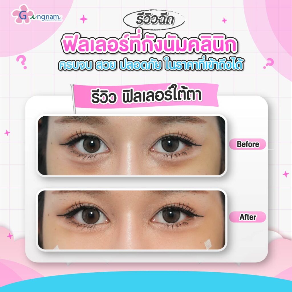 ที่กังนัมคลินิกราคาโปรโมชันในการฉีดฟิลเลอร์ใต้ตาขึ้นอยู่กับแต่ละยี่ห้อ แต่ละรุ่นที่เลือก โดยมีราคาเริ่มต้นที่ 1,999 บาทต่อ 1 CC สำหรับลูกค้าใหม่