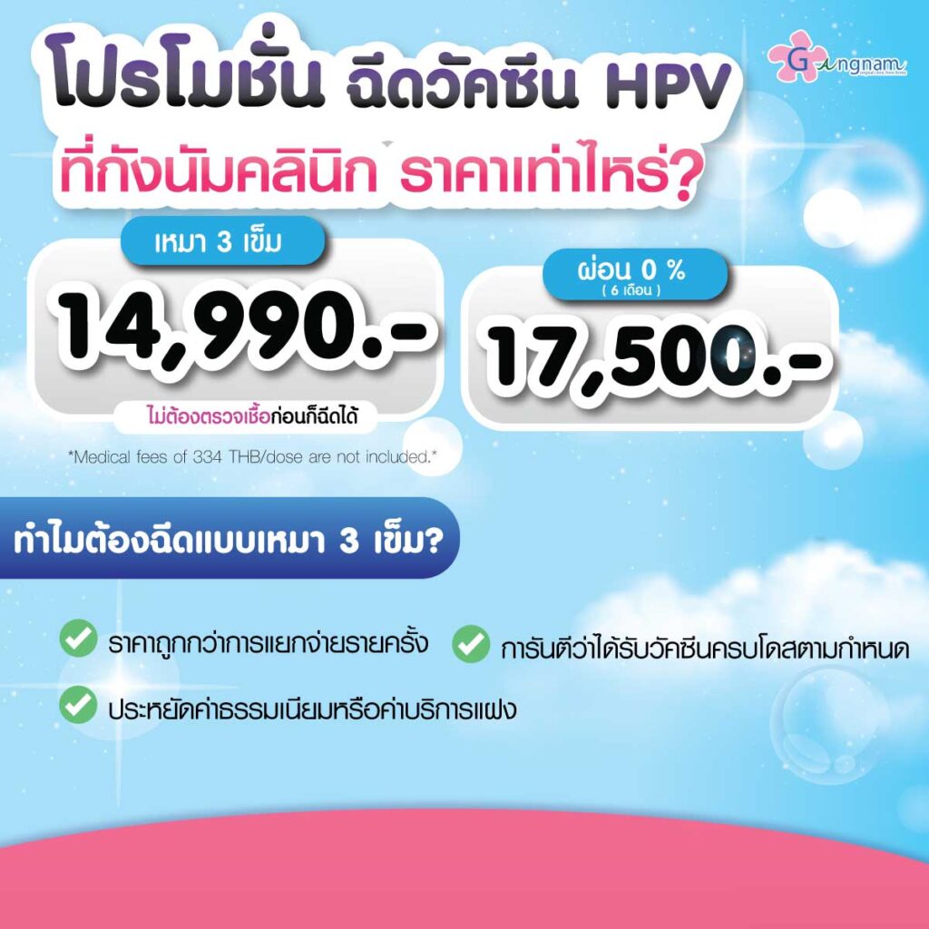 โปรโมชั่น ฉีดวัคซีน HPV ที่กังนัมคลินิก ราคาเท่าไหร่
