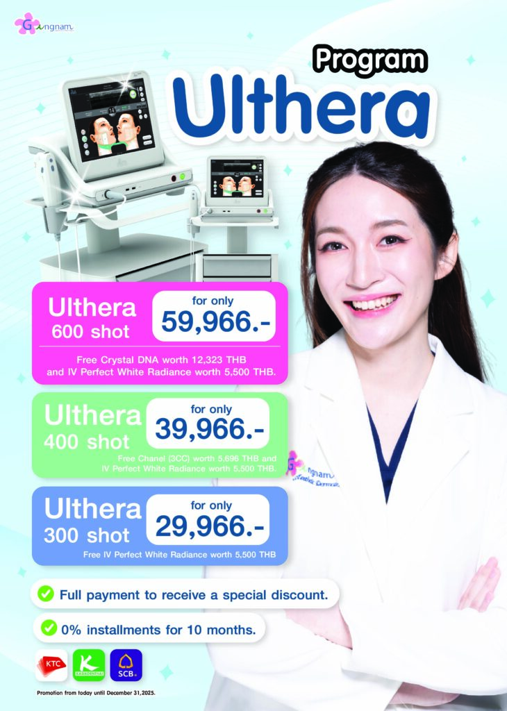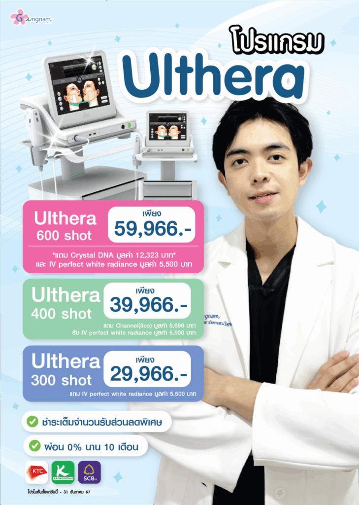 - Ulthera 600 shots: 59,966 THB (Free Crystal DNA + IV Perfect White Radiance)