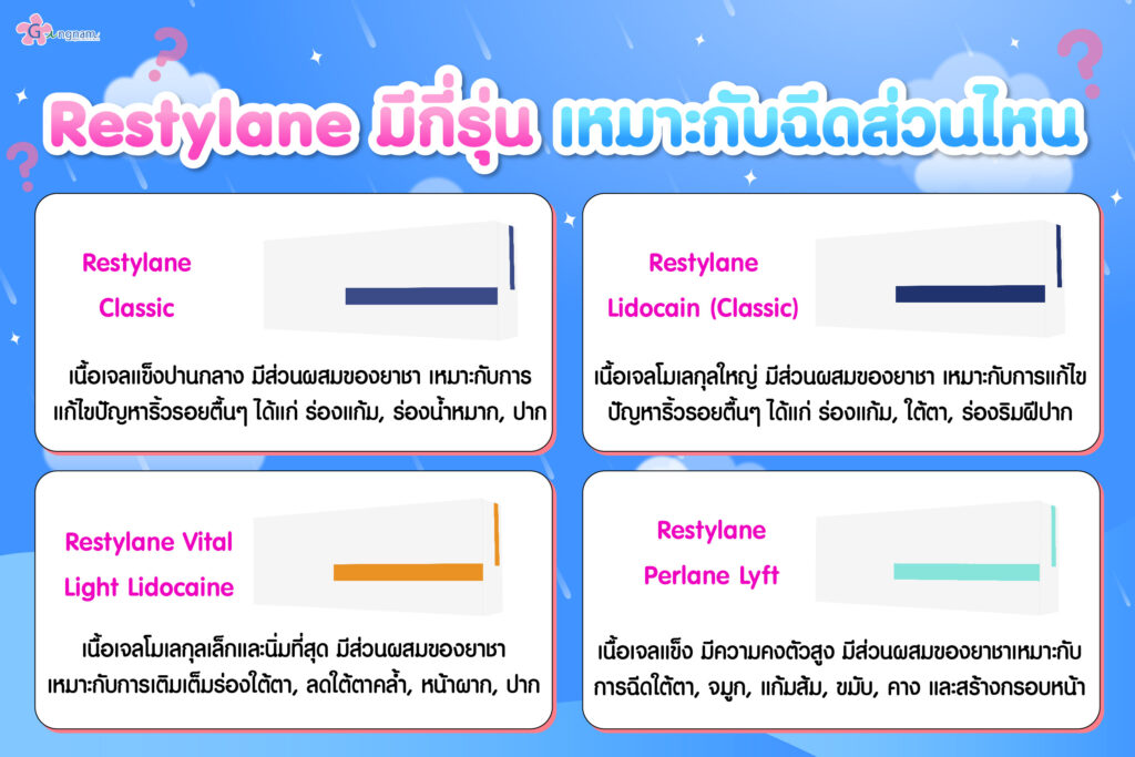 ฟิลเลอร์ Restylane มีรุ่นไหนบ้าง แต่ละรุ่นต่างกันอย่างไร ฉีดตรงไหน?