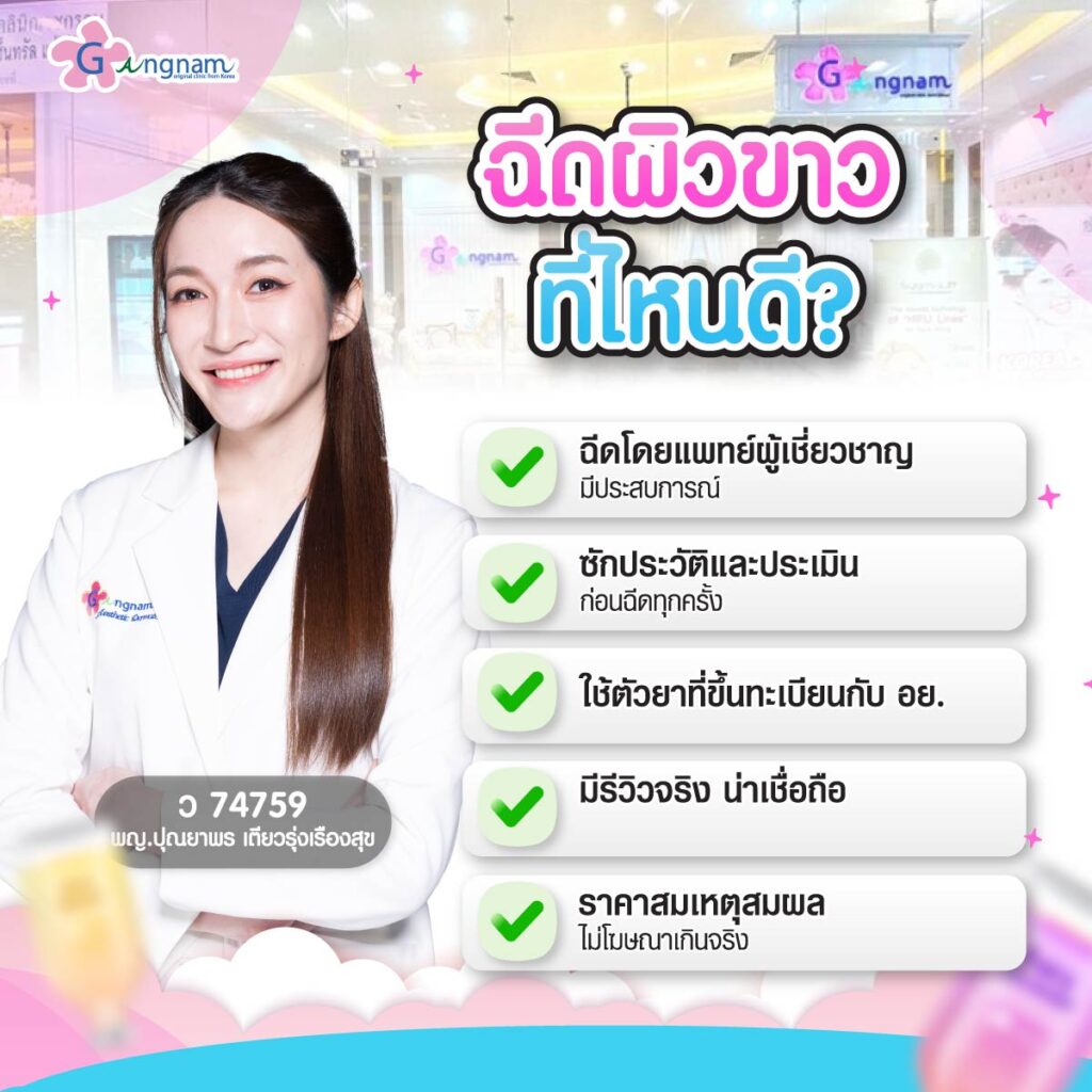 เพราะฉะนั้นเพื่อความปลอดภัย ควรเลือกฉีดผิวขาวกับคลินิกที่น่าเชื่อถือ มีการซักถามประวัติอย่างละเอียด ถี่ถ้วน มีการเช็กข้อมูลสุขภาพ และใช้ตัวยาที่ปลอดภัยได้รับการรับรองมาตรฐาน ที่สามารถตรวจสอบได้